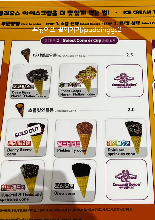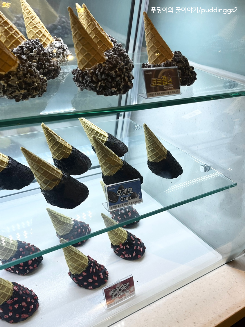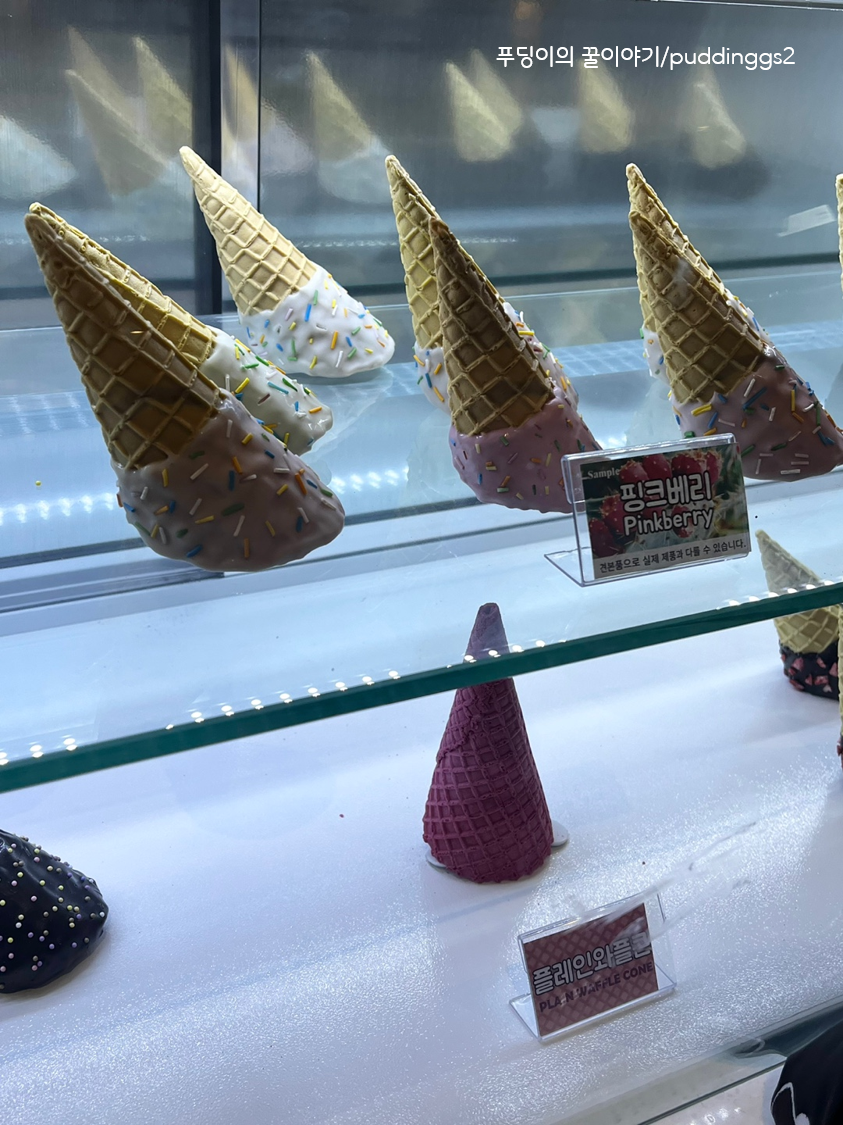 줄 서서 기다리면서 콘 종류 보기!!